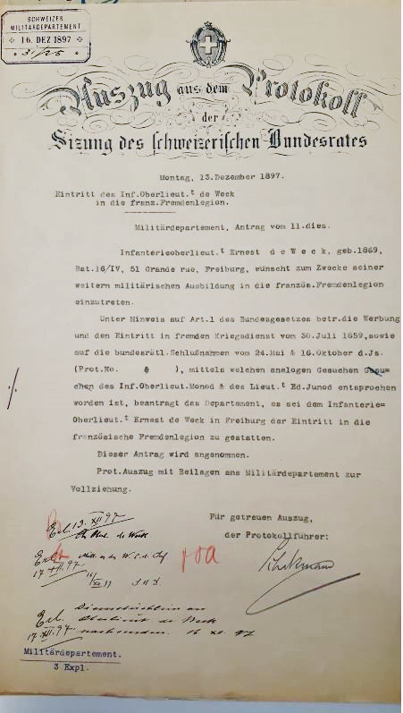 . Dies ging unter anderem auf den belgischen Konsul in Neuchâtel, Jean Boillot-Robert, zurück, der sehr erfolgreich Schweizer Söldner für die belgische Kolonialarmee rekrutierte. Er veröffentlichte Annoncen und Artikel in Zeitungen, um die Gerüchte, wonach der belgische Staat im Kongo sehr brutal gegen die lokale Bevölkerung vorginge, zu entkräften.
